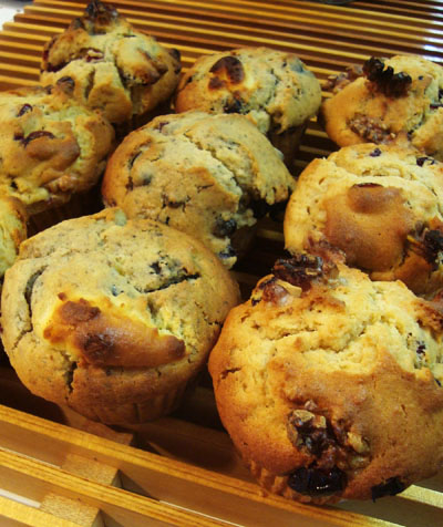 クランベリーとくるみのマフィン(手前)270円